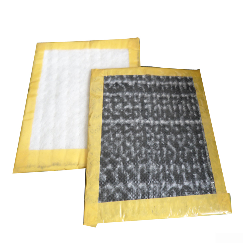 鋪設(shè)水平方向的膨潤(rùn)土毯,并在施工縫位置將膨潤(rùn)土毯多預(yù)留60cm長(zhǎng)度,將多出來(lái)的部分彎折成雙層膨潤(rùn)土毯進(jìn)行保護(hù),并在收頭位置撒布膨潤(rùn)土粉。在施工縫位置支設(shè)模板,止水帶設(shè)置在底板板厚的1/2處并固定牢固,止水帶下方放置U形膨潤(rùn)土毯并固定在模板上。在這些完成之后,澆筑一側(cè)的混凝土。